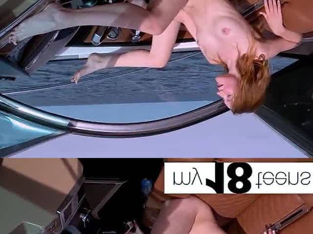 Redhead plays with pussy and sucks a banana on a yacht