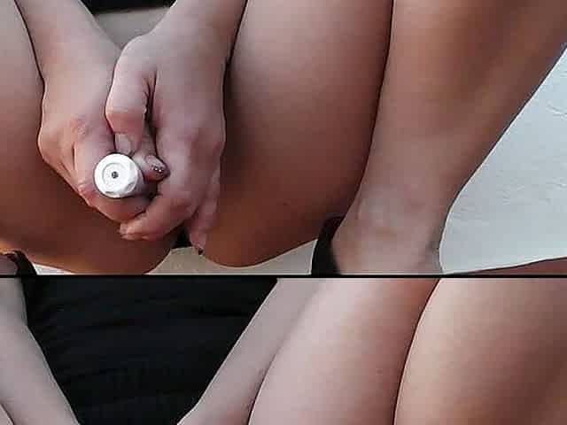 Hot sexy teen enjoys masturbating with passion outdoors in rain