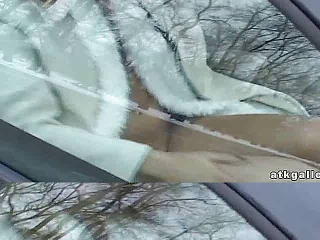 Horny woman in exhibitionism gets completely naked as a passenger by car