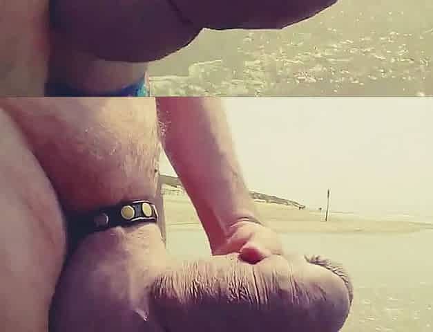 Exhibionist walking jerkin at beach