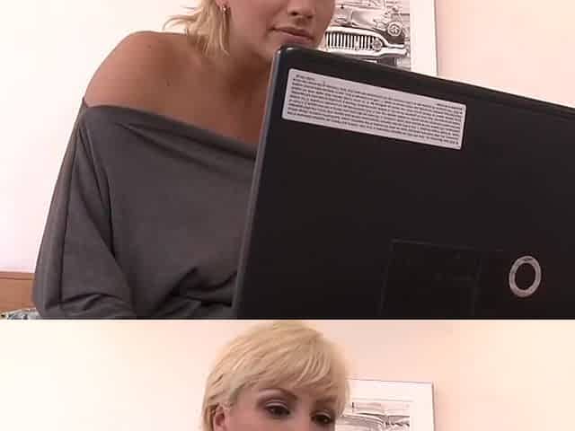 Sexy blonde stripper sticks fingers in her cunt