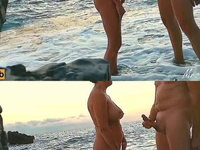 Exposed beach summer day! Pee and sunbathed on public beach and then jerked off boyfriend rod