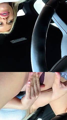 Taxi driver is taking her to a porn store and she blows him in the cab