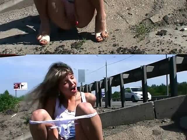 Claudia Macc is playing with her pussy in public and peeing
