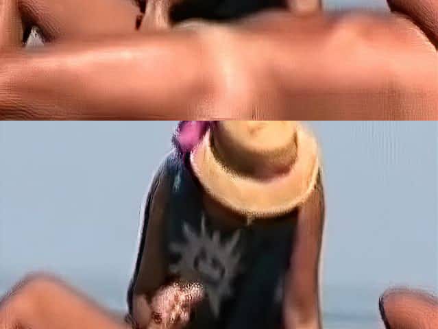 Fat woman blows her man at beach
