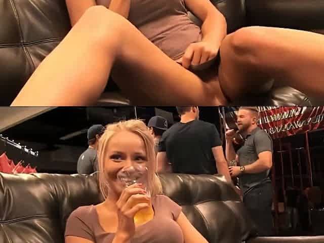 Pantiless Hot Blonde in Public at a Party