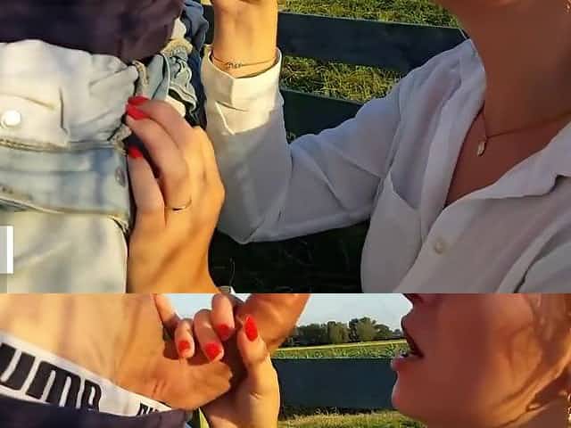 Daisy showing her pierced nipple out in an open field (BJ, fucked, cumshot)