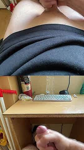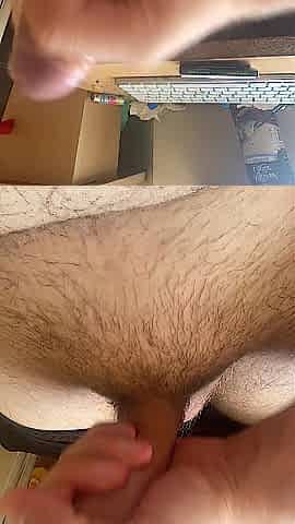 Wanking and cumming with my penis on the desk