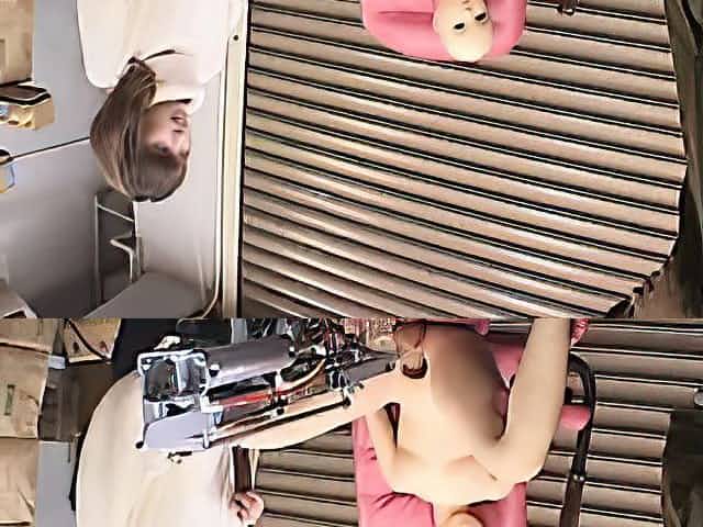 Sexy Asian babe spreads her legs and a fucking machine drills her cunt