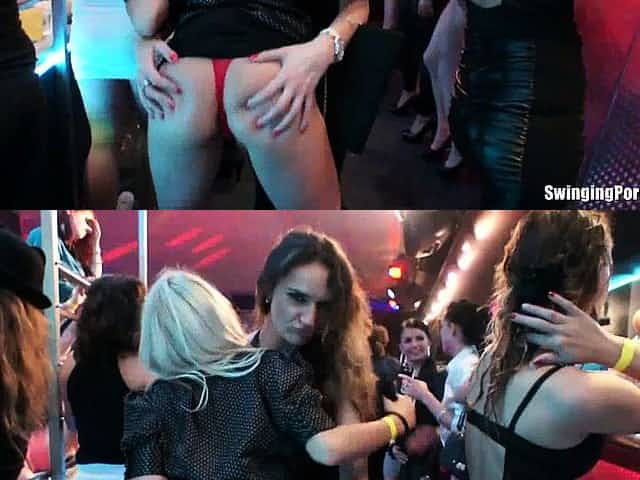 Sexy lesbians dancing in club
