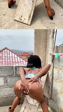 Black big beautiful woman white plays with snatch at work