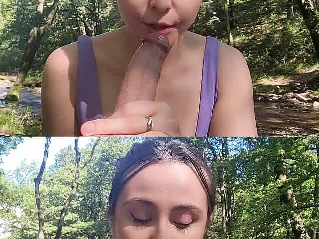 Emily Hill - Forest Fun #2 - Dildo Blowjob, Flashing, Riding and more