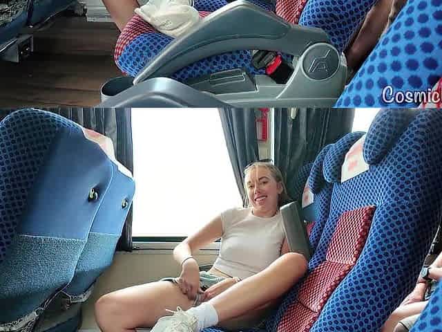 Risky! Gal Cums on Public Bus with Dildo