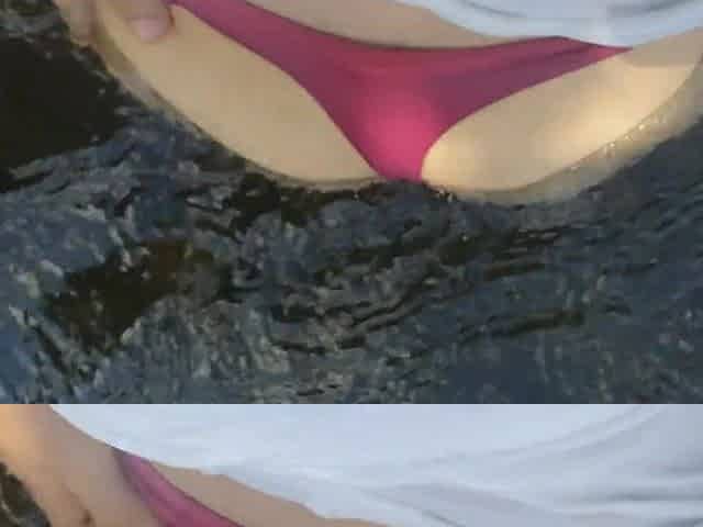 A Golden-haired Gal Washes Herself By The River And 2 Old Studs Watch