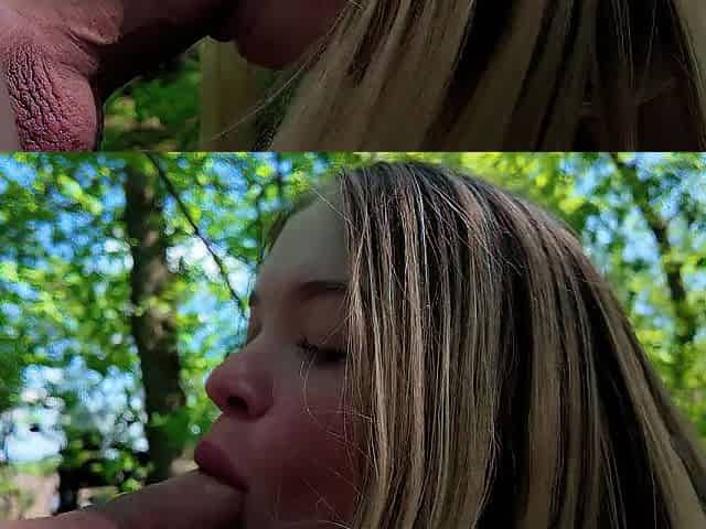 Cute porn model xKeryB masturbates her pussy and sucks her stepbrother's cock in the woods Talking P