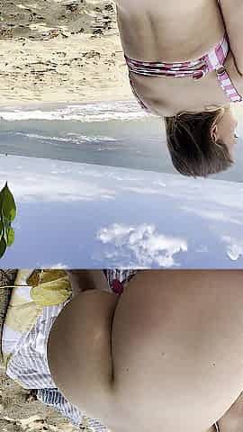 Risky public beach masturbation