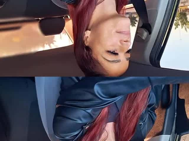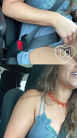 Strange Brunette hair with large breasts masturbates in public inside my car