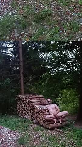 RAMROD FLASH IN FOREST: Sporty mother i'd like to fuck caught me stroking and laughs at my giant spunk flow