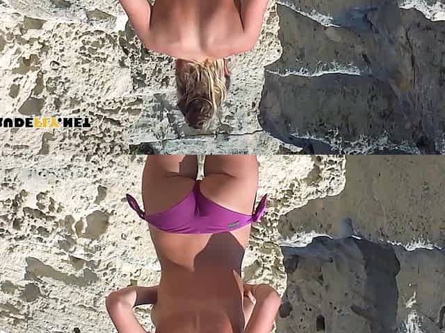 Young Busty Girlfriend Naked in Ibiza - Outdoor Solo on the Beach