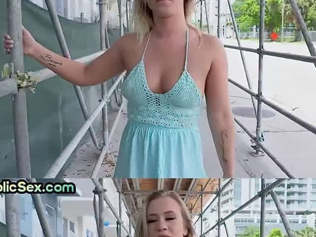 Sexy blonde with huge boobs loves sucking and fucking big cock publicly