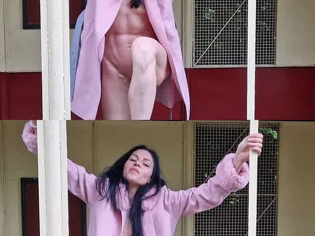 Pussy Flash - My Exhibitionist Wife Walks Naked in the Street Where Many People Pass - Caught