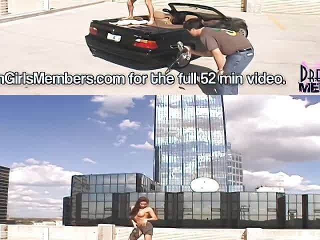 Brunette hair Freak Bares This guy Large Natural Titties In Public