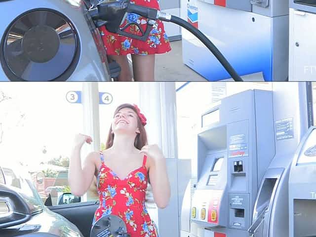 Horny blonde teen gets picked up and bj to huge cock