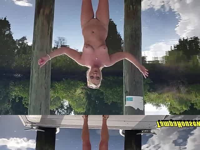 Guy bet that the girl would not be able to swim in a public pool naked and lost