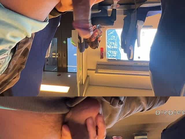 Public naked near the van with a strap on dildo. he licks jism at the end