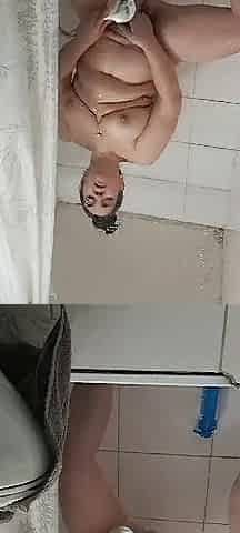 Stepmom takes a shower washing her pussy to get the cum out after fucking