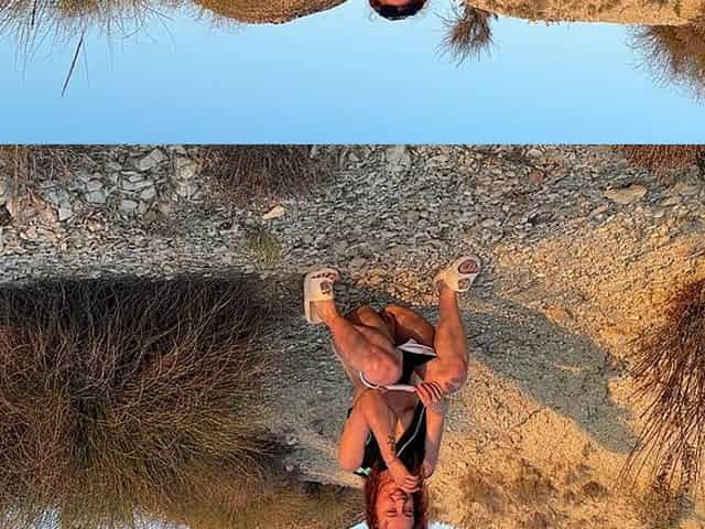 Flashing boobs while walking in the sea