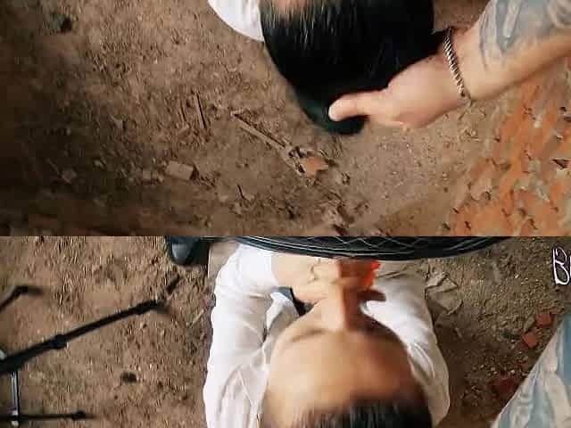Black Lynn Sucks Cock and Gets Cum Down Her Throat in Abandoned Building