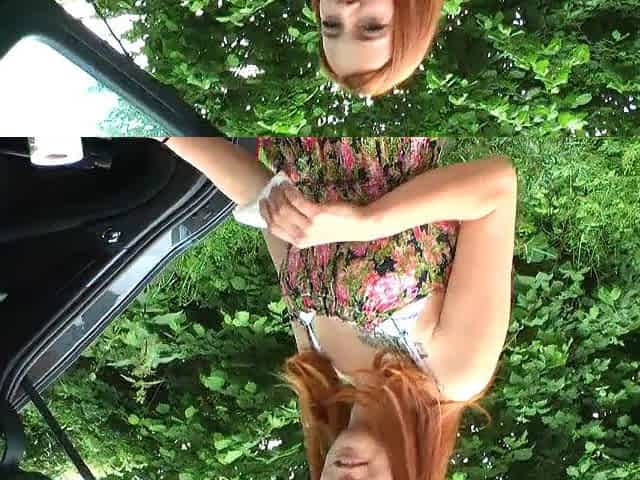 Japanese doll shows nude pussy in sexy outdoor scene