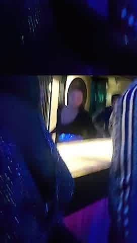 Cute teen girl is filmed while being bottomless with painted pants in a club