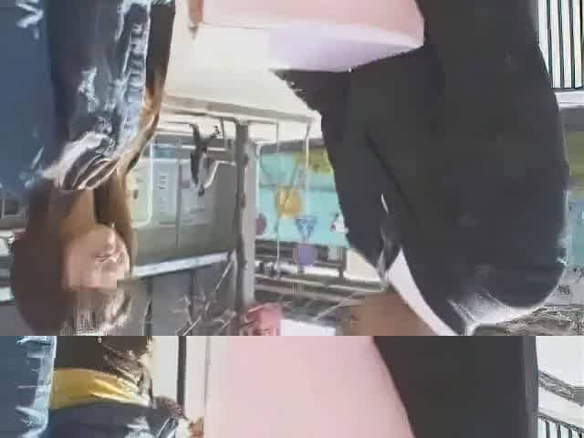 Risky upskirt teasing with no panties in public places