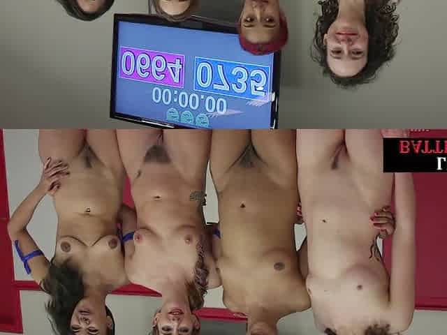 Naked wrestling dykes perform group pussyfingering in public