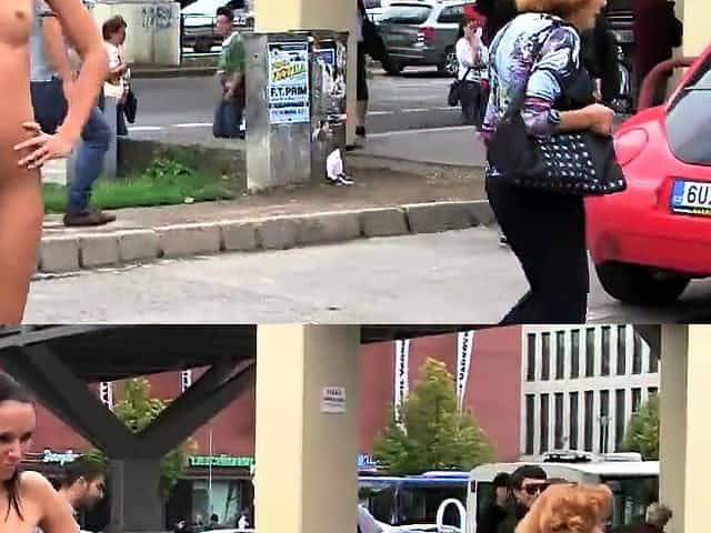 Naked Czech girl was walking through the city center