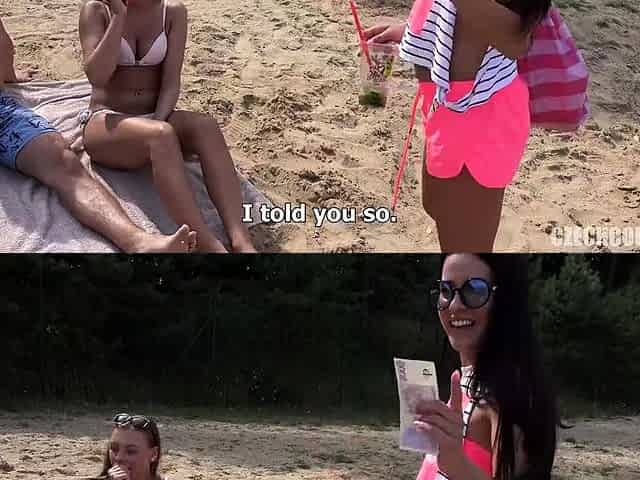 Risky public pussy flashing leads to a helpful encounter at the beach - MissCreamy