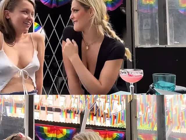 "flashing tits in public at a gas station in a cafe"