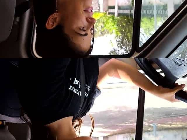 OMG! HOTTIE GETTING STRIPPED WHILST DRIVING! IN FRONT OF A BOYFREND TRAVELER!