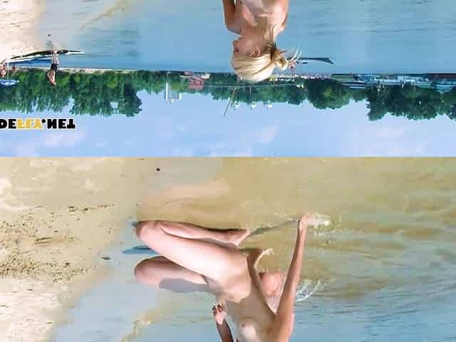 Two steamy nudists are topless and enjoying the sun