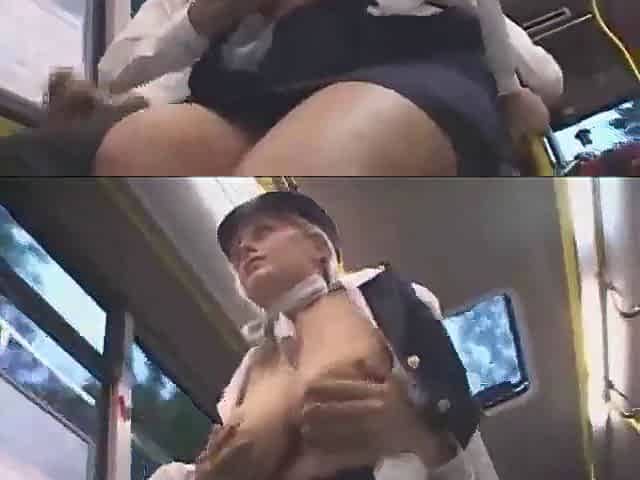 Busty stewardess public handjob on the bus