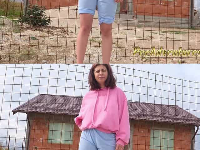 Hipster redhead changes wet clothes and pee outdoor - Girl with a hoodie pee trough her jeans