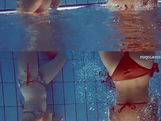 Hottest teens Melisa and Marusia swimming in the pool
