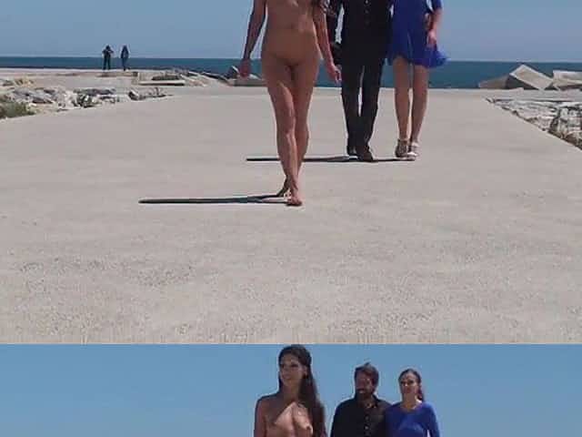 PUBLIC DISGRACE - Merry boobed impressive hottie walks outdoor nude on beach