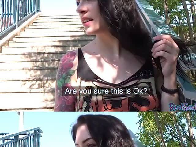 Tattooed eurobabe pulled to give a blowjob before public sex