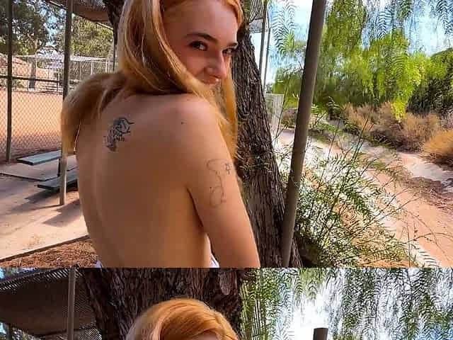 Blonde Exhibitionist Babe Gets Naked Outdoors