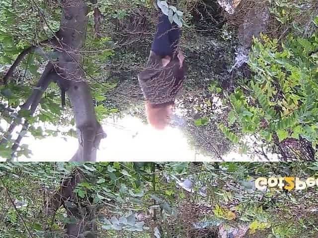Redheaded Babe Pisses Long And Hard In Trees