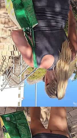 Nasty hotty in miniskirt no pants flashing in the park (public upskirt)