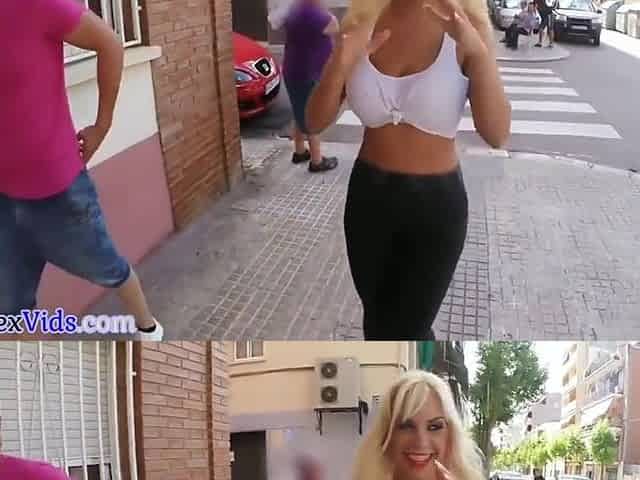 Beautiful blonde Blanche exposes her tits and gets fucked in public